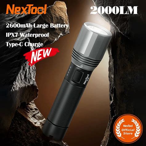 Nextool Rechargeable Flashlight 5000Mah 2000Lm 380m 5Modes IPX7 Waterproof LED Light Type-C Seaching
