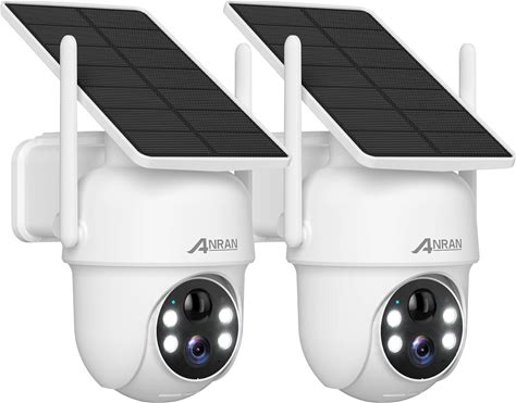 ANRAN Solar Security Cameras Wireless Outdoor,2K Cameras For Home Security With Fixed Solar Panel, 360!Ã PTZ For Home Surveillance,2.4G Wifi, PIR Human Detection, 3MP Color Night Vision, 2 Pack