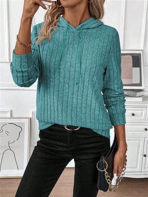 Solid Kangaroo Pocket Drawstring Thermal Lined Hoodie,Ladies Spring/Fall Casual Drawstring,Pocket Long Sleeve Hooded Regular Fit Regular Mint Green Drop Shoulder Pullovers Women Hoodies,Long Sleeve Tops,M