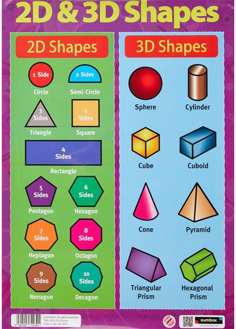 Sumbox A3 2D And 3D Shapes Poster - Educational Maths Wall Chart For Kids, Geometry Learning For KS1 & EYFS