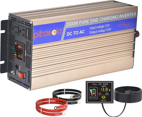Pikasola 2000W Power Inverters Pure Sine Wave Inverter 12V To 110V,Color LED Displayremote Control, Windsolar Inverter Suit Off Grid Solar Power Systems, Converter For Car RV Truck Home Boat Camping