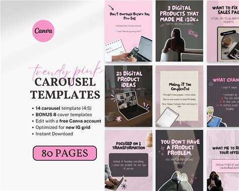 Pink Carousel Template Instagram Editable Aesthetic Canva Template 80 Trendy Carousel Coaches Creators Vas Tiktok Digital Product Sellers